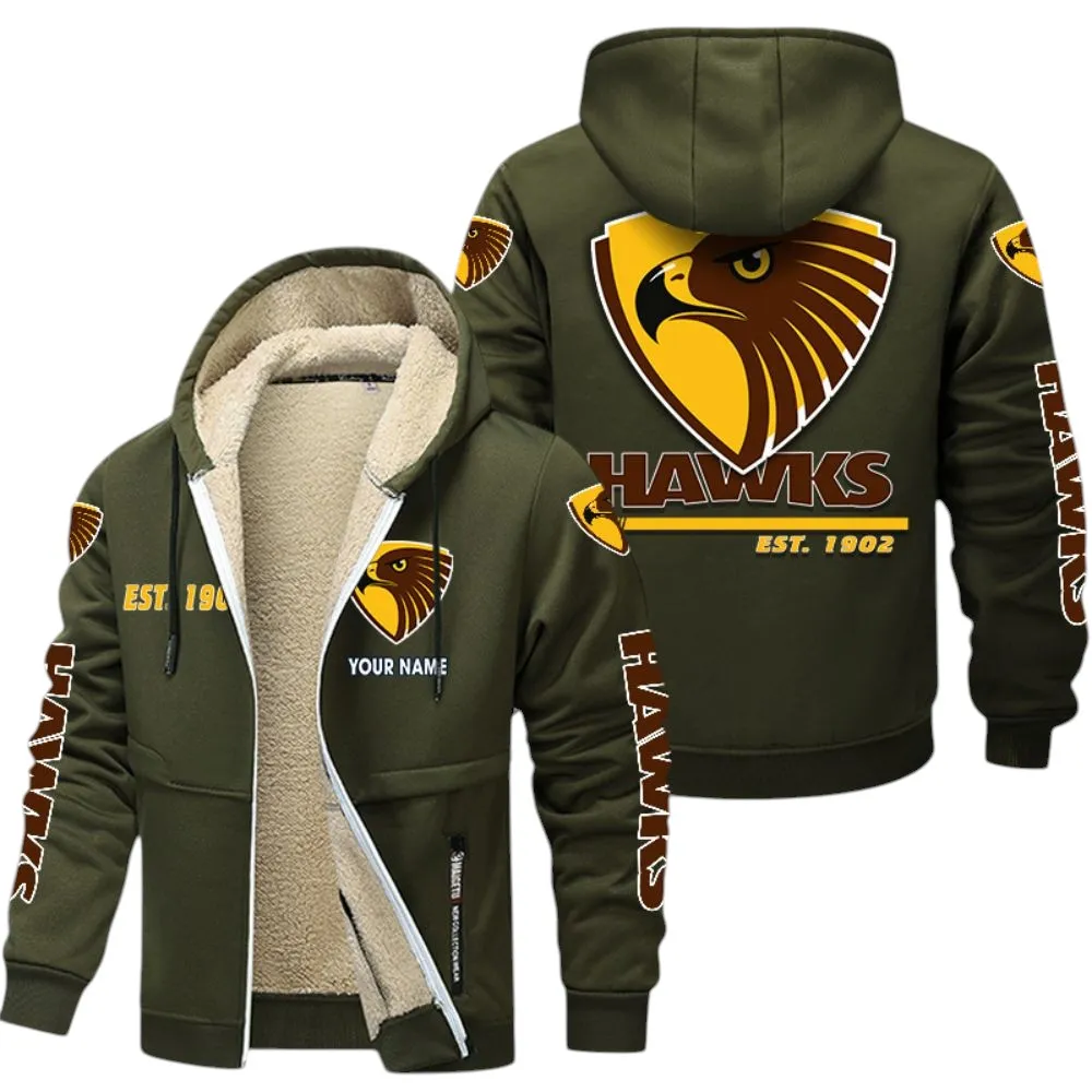 Hawthorn Fans Gift Lamb Fleece Thick Coat, All Over Print Thick Coat For Sport Fan, Custom Name AFL144071725140 – Army Green