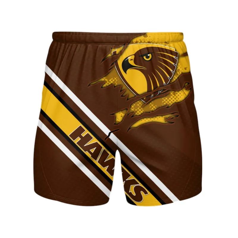 Hawthorn Football Club Beach Shorts 3D Print, All Over Print Hawaiian Shorts Hawthorn Football Club AFL132062125455