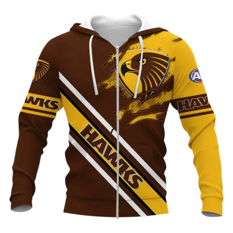Hawthorn Football Club Zipper Hoodie 3D Print, All Over Print Zipper Hoodie Hawthorn Football Club AFL132062125455