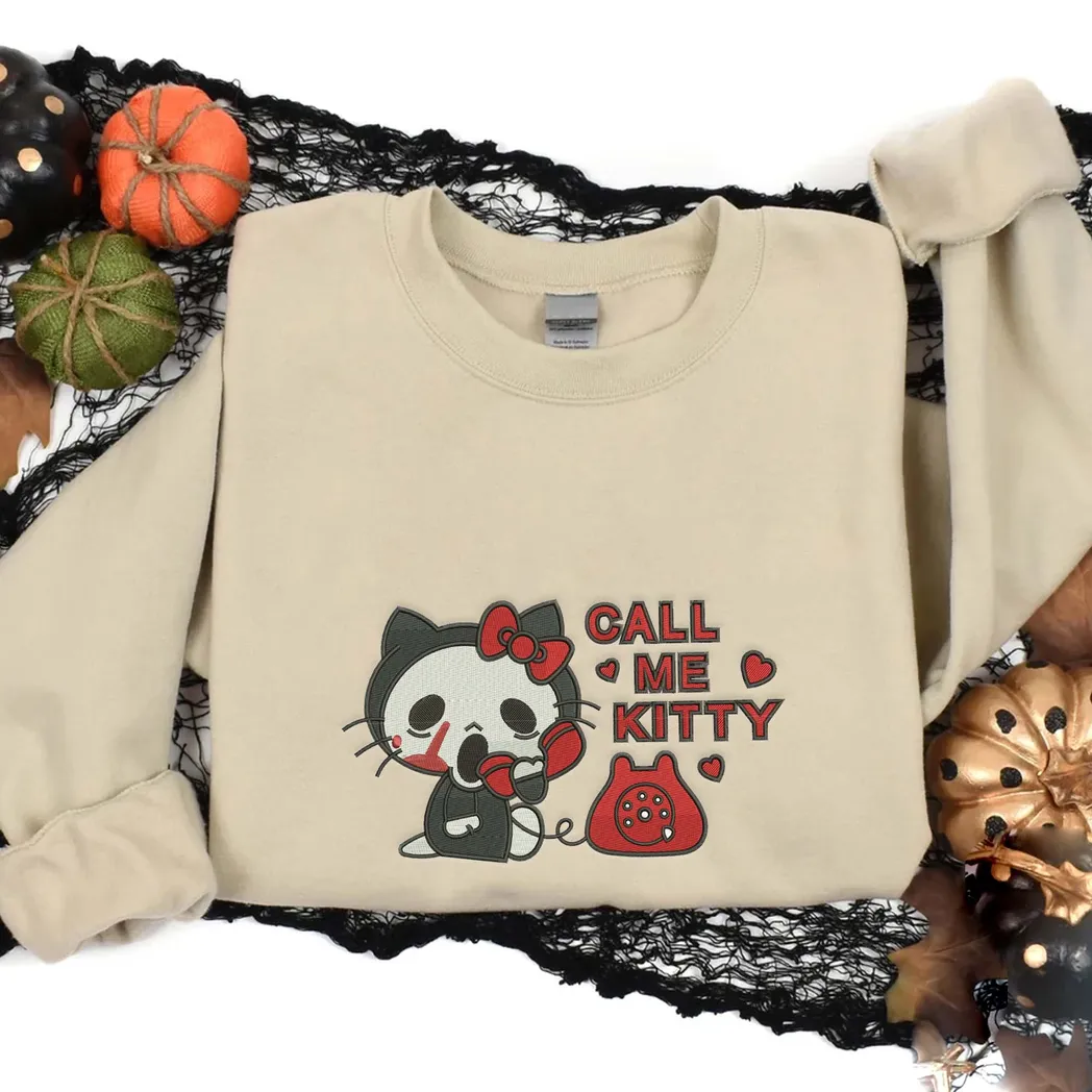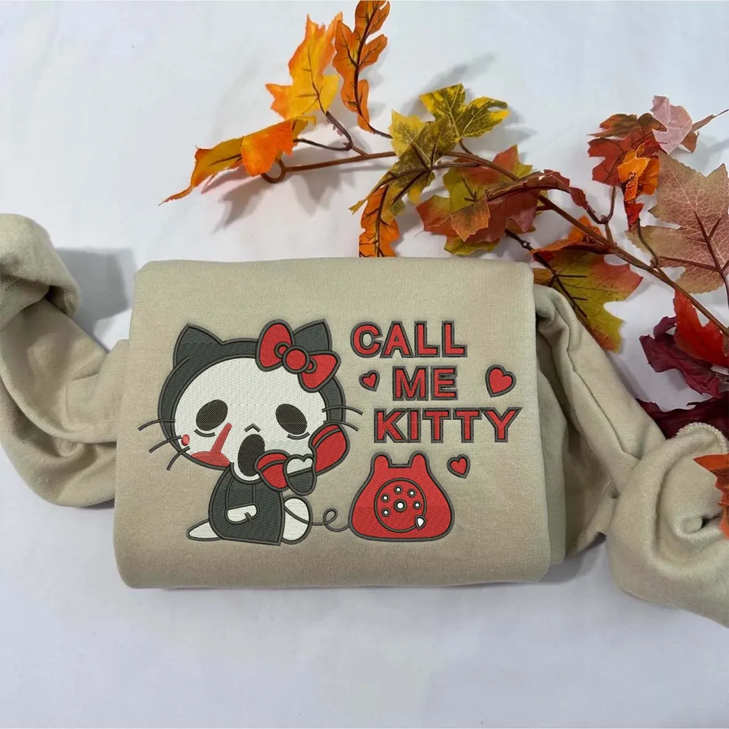 Hello Kitty Cartoon Cosplay Halloween Embroidered Sweatshirt Fashion Style