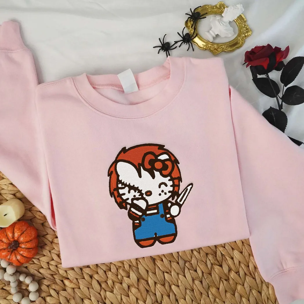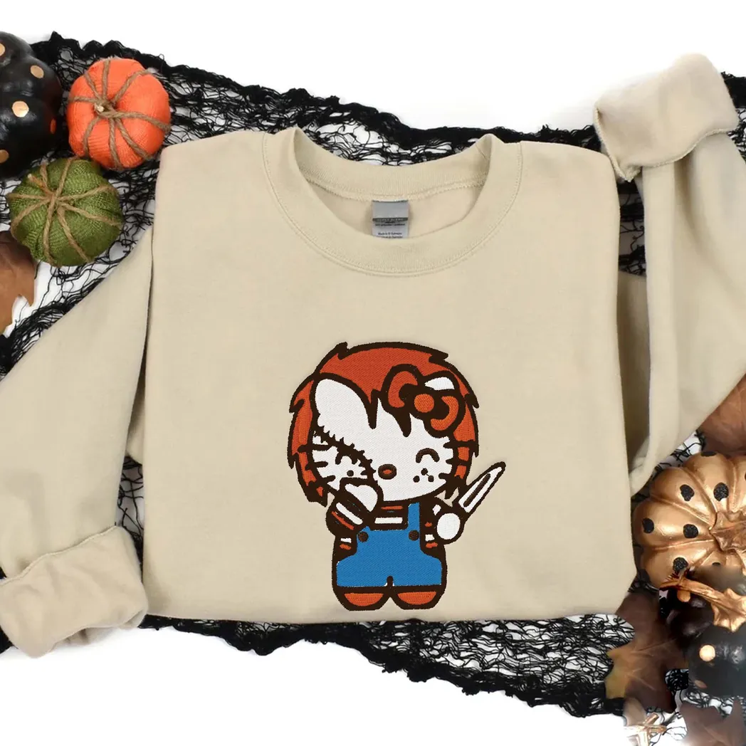 Hello Kitty Cartoon Cosplay Halloween Embroidered Sweatshirt Fashion Style
