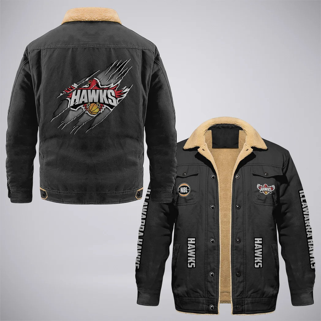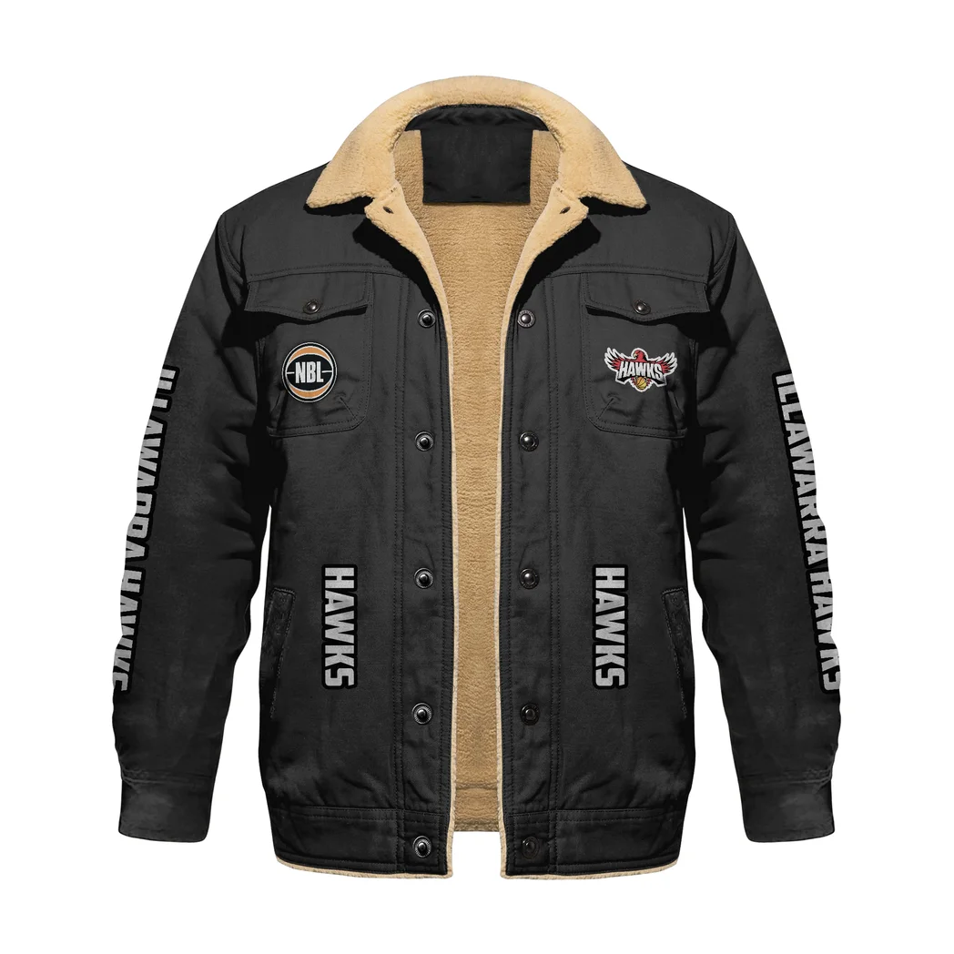 Illawarra Hawks Jacket Fur Collar Fleece  NBL 2025 For Fan Illawarra Hawks HVN1162072525IH  HVN1162072525IH - Black