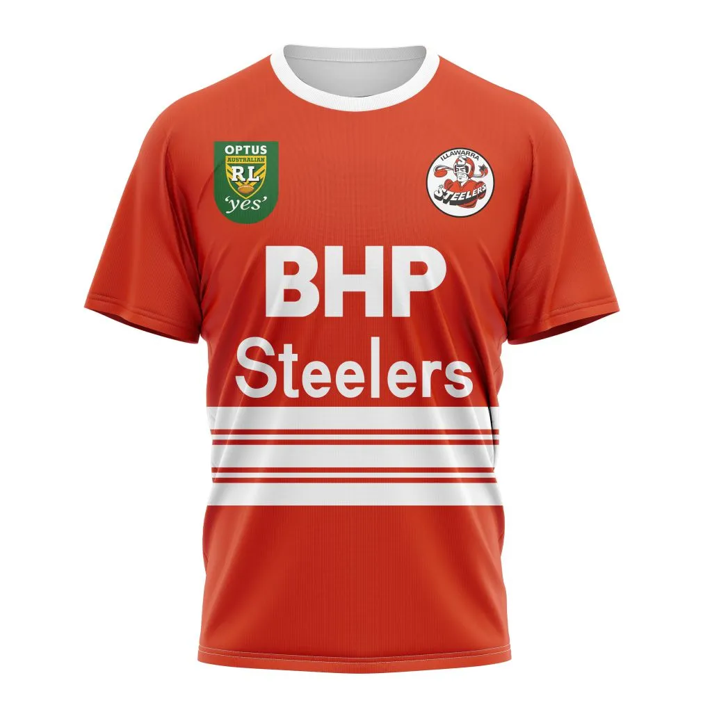Illawarra Steelers Retro NRL T-Shirt 3D Print, Personalize Name and Number NRL108061625894
