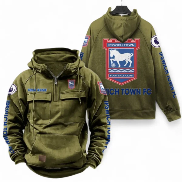 Ipswich Town F.C Fans Gift Tactical Quarter Zip Hoodie, All Over Print Tactical Quarter Zip Hoodie For Sport Fan, Custom Name EPL111073025128-Army Green