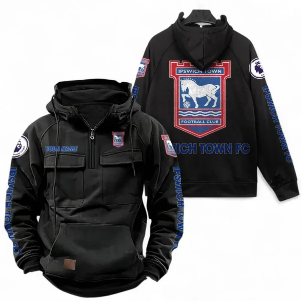 Ipswich Town F.C Fans Gift Tactical Quarter Zip Hoodie, All Over Print Tactical Quarter Zip Hoodie For Sport Fan, Custom Name EPL111073025128-Black