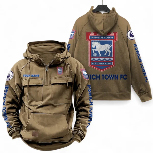 Ipswich Town F.C Fans Gift Tactical Quarter Zip Hoodie, All Over Print Tactical Quarter Zip Hoodie For Sport Fan, Custom Name EPL111073025128-Khaki