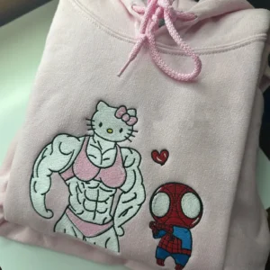 Kuromi And Spiderman Squished Frame Embroidery Crewneck Sweatshirt, Maching Embroidered Hoodie For Couple, Valentines