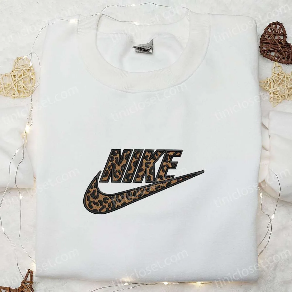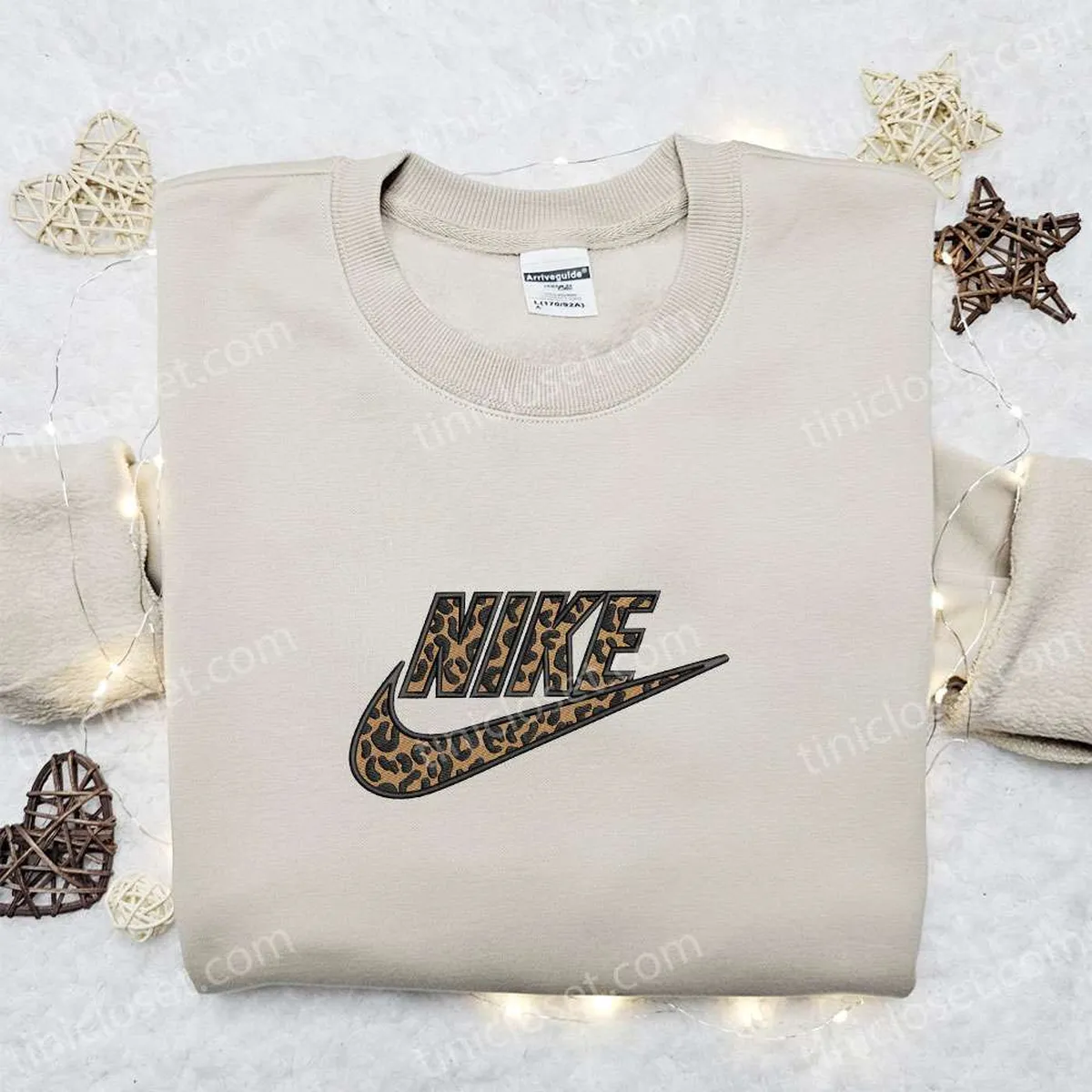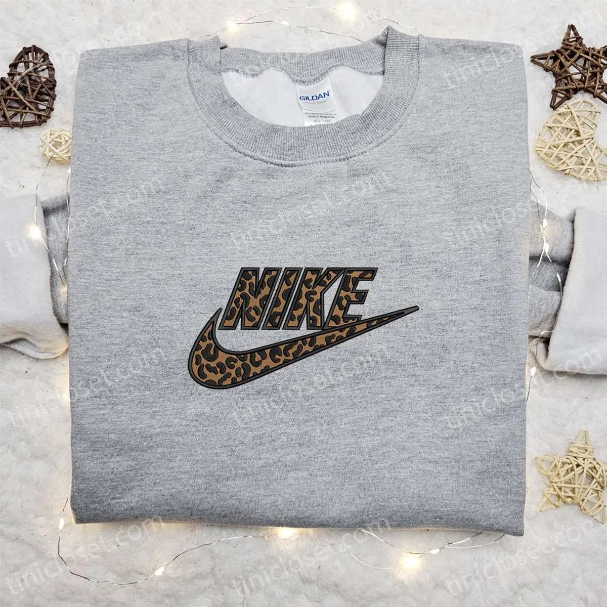 Leopard Pattern x Nike Embroidered Sweatshirt, Nike Inspired Embroidered Shirt, Best Birthday Gift Ideas for Family