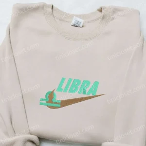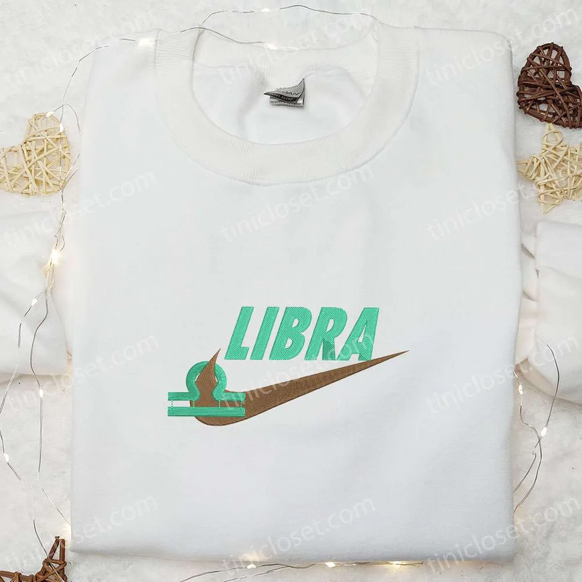 Libra Zodiac x Nike Swoosh Embroidered Shirt, Nike Inspired Embroidered Hoodie, Best Gifts For Family