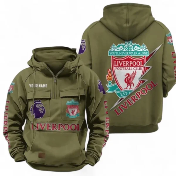 Liverpool F.C Fans Gift Tactical Quarter Zip Hoodie, All Over Print Tactical Quarter Zip Hoodie For Sport Fan, Custom Name EPL113073025444-Army Green