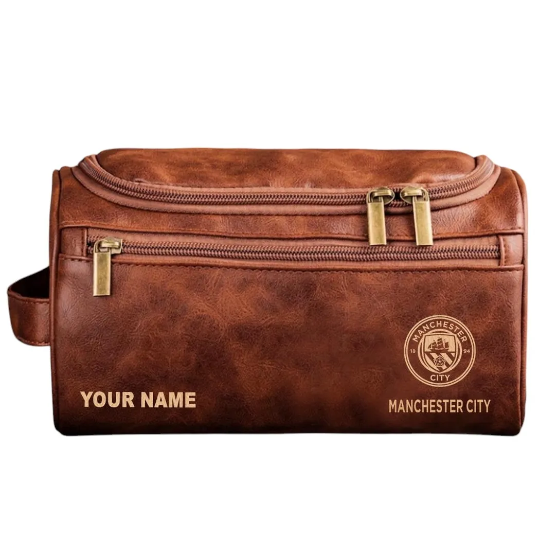 Manchester City Leather Toiletry Bag, All Over Print Leather Toiletry Bag Manchester City – Red Brown DEPL5405092031