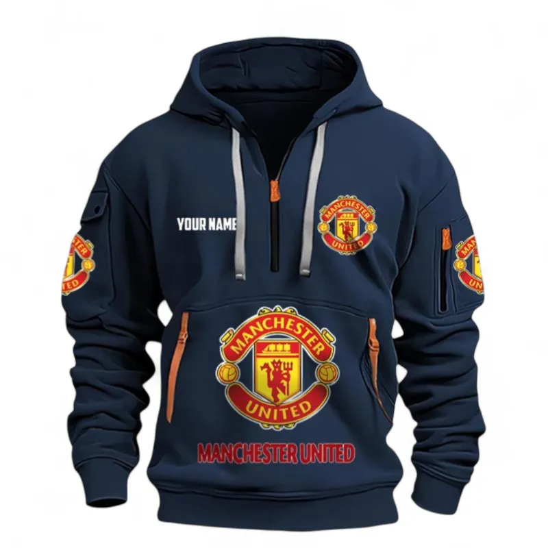 Manchester Utd Fans Gift Hoodie Half Zipper, All Over Print Hoodie Half Zipper For Sport Fan, Custom Name EPL116073125006-Navy