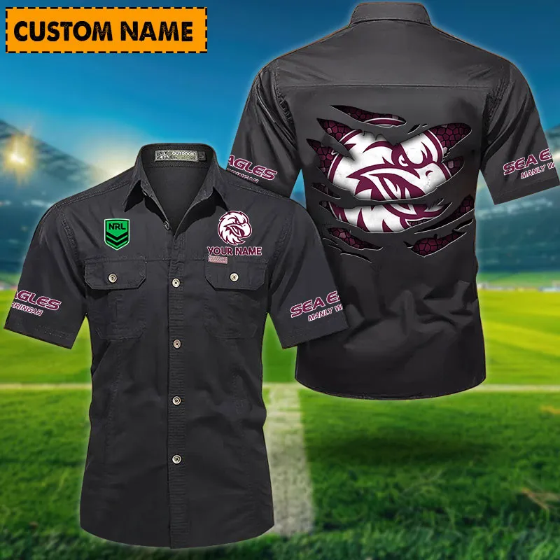 Manly Warringah Sea Eagles Fans Gift Short Sleeved Shirt, All Over Print Short Sleeved Shirt For Sport Fan, Custom Name NRL171071625557-Black