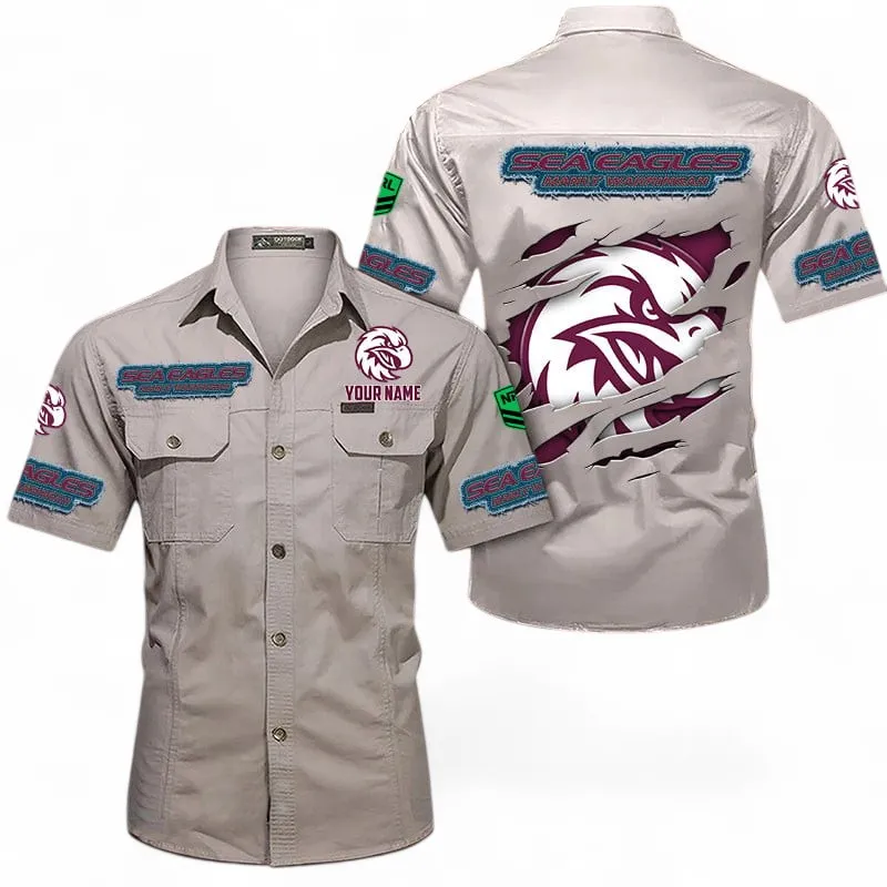 Manly Warringah Sea Eagles Fans Gift Short Sleeved Shirt, All Over Print Short Sleeved Shirt For Sport Fan, Custom Name NRL172071625337-Khaki