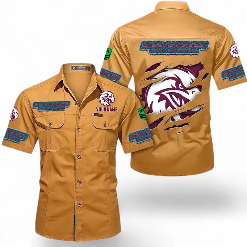 Manly Warringah Sea Eagles Fans Gift Short Sleeved Shirt, All Over Print Short Sleeved Shirt For Sport Fan, Custom Name NRL172071625337-Turmeric