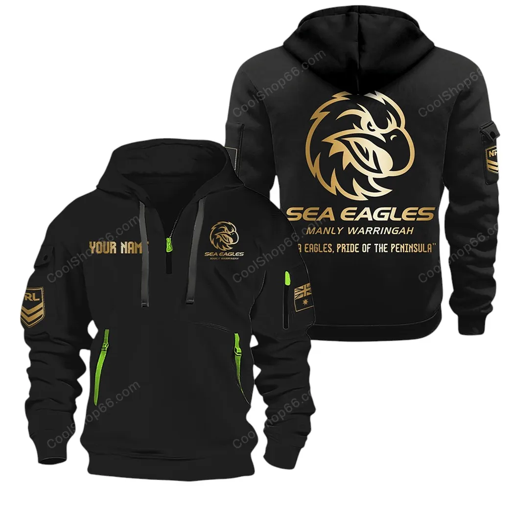 Manly Warringah Sea Eagles Hoodie Half Zipper, All Over Print Hoodie Half Zipper Manly Warringah Sea Eagles DNRL1316302025 - Black