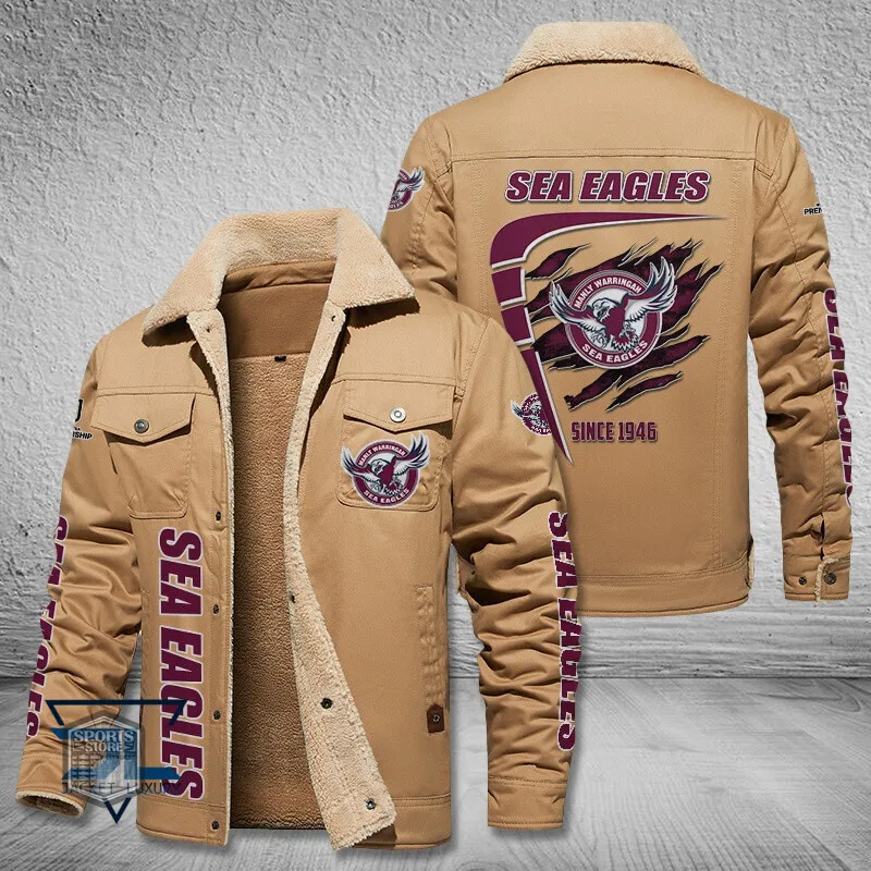 Manly Warringah Sea Eagles Jacket Fur Collar Fleece, All Over Print Jacket Fur Collar Fleece For Sport Fan, Custom Name NRL191080225779-Light Khaki