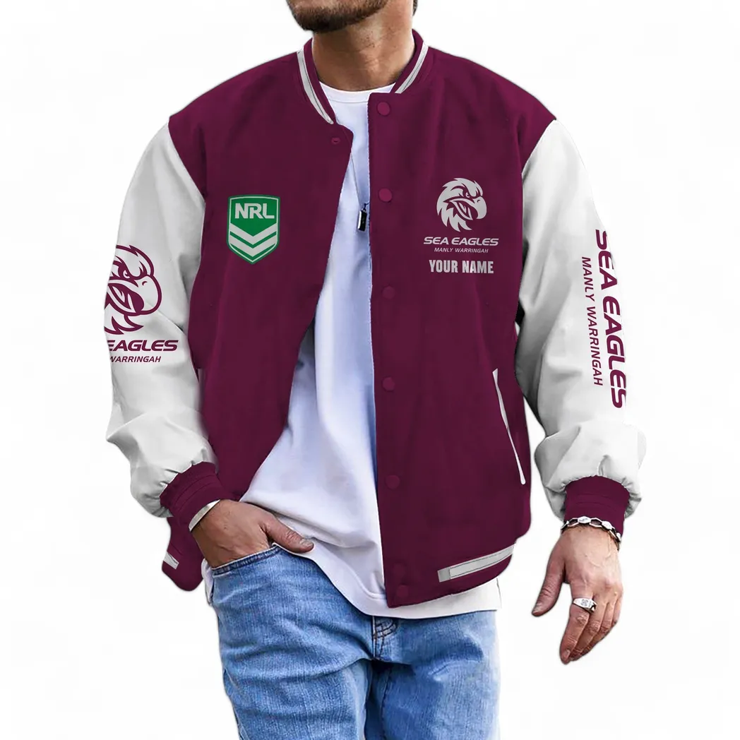 Manly Warringah Sea Eagles NRL Baseball Jacket NRL43012125676, Gift For Fan Manly Warringah Sea Eagles