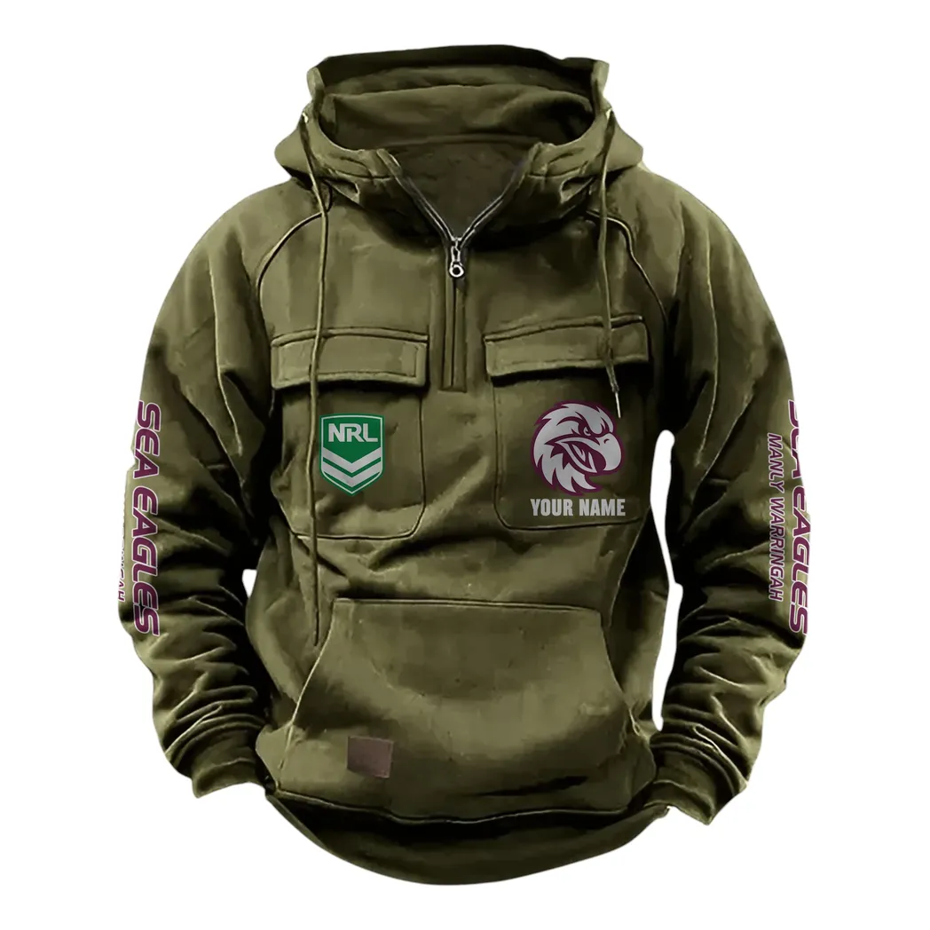 Manly Warringah Sea Eagles NRL Tactical Quarter Zip Hoodie NRL43012125574, Gift For Fan Manly Warringah Sea Eagles - Army Green