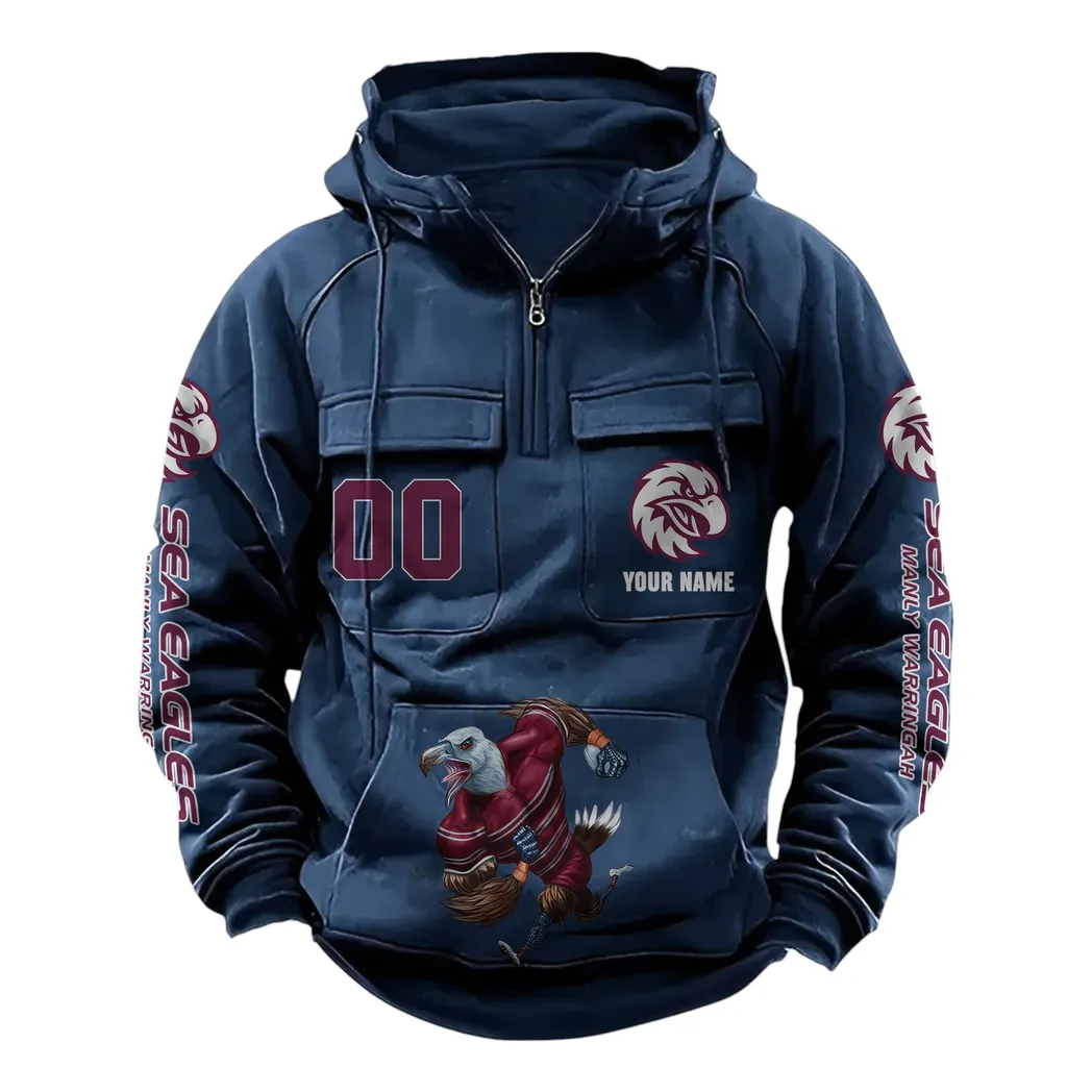 Manly Warringah Sea Eagles NRL Tactical Quarter Zip Hoodie NRL43012125599, Gift For Fan Manly Warringah Sea Eagles - Dark Blue