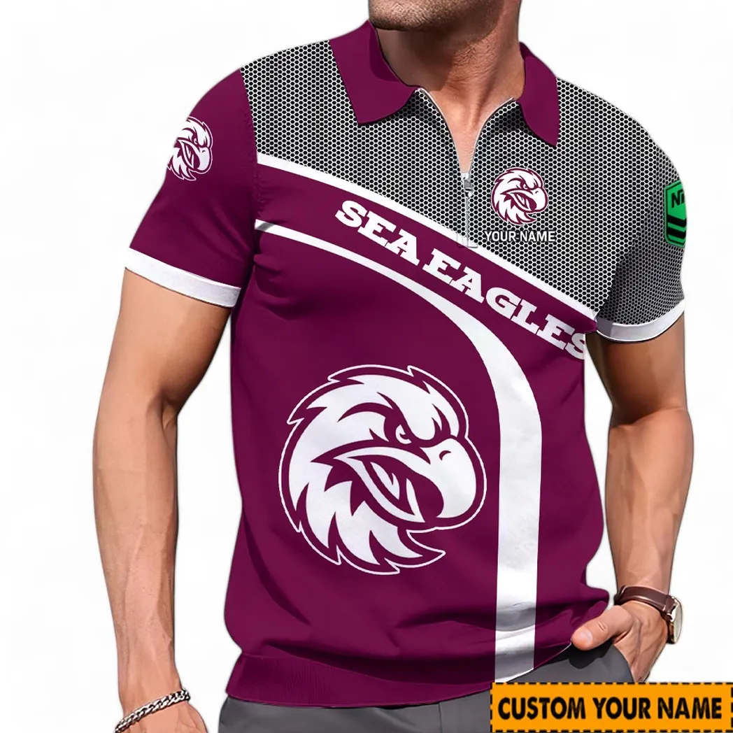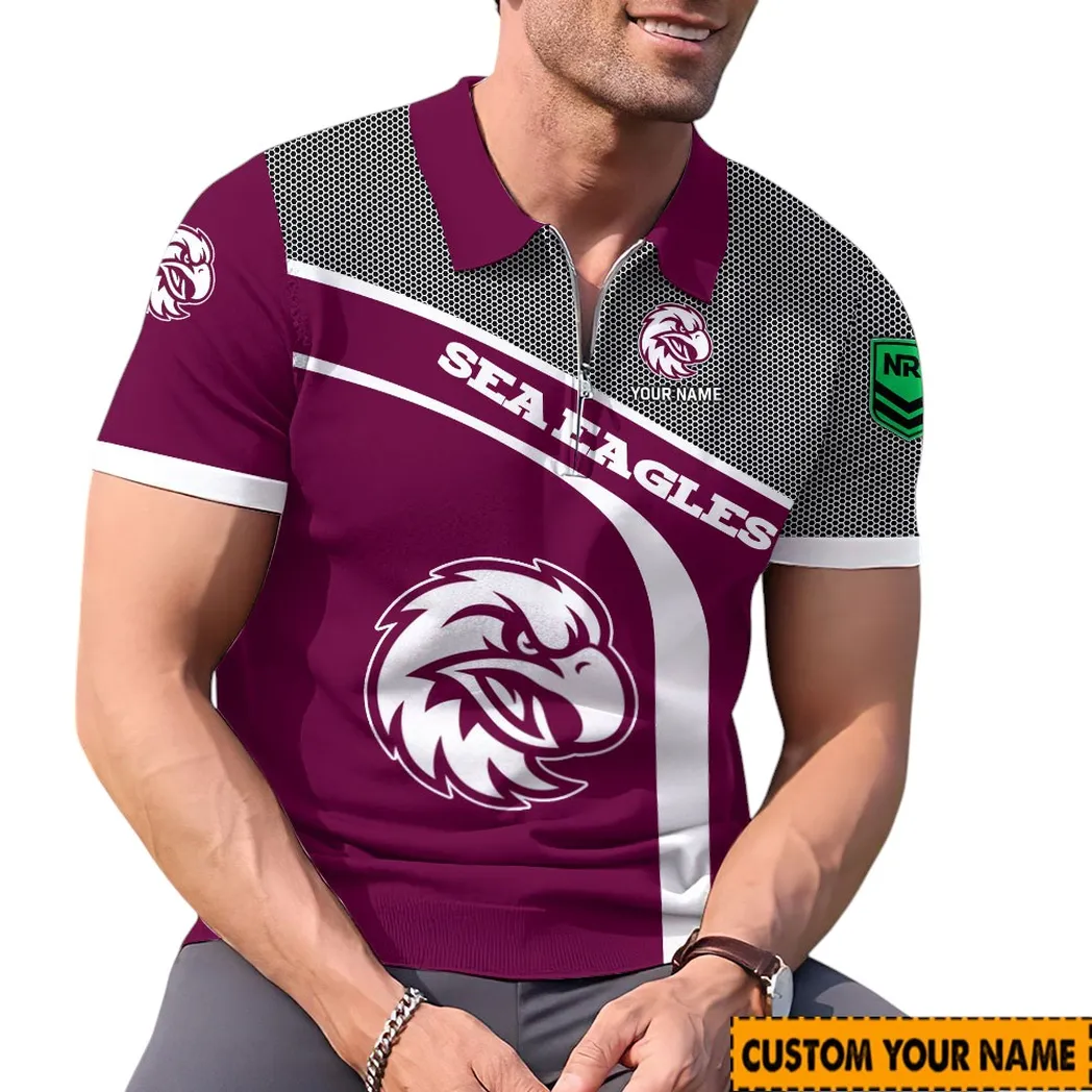 Manly Warringah Sea Eagles NRL Zipper Polo Shirt NRL02121624411, Gift For Fan Manly Warringah Sea Eagles