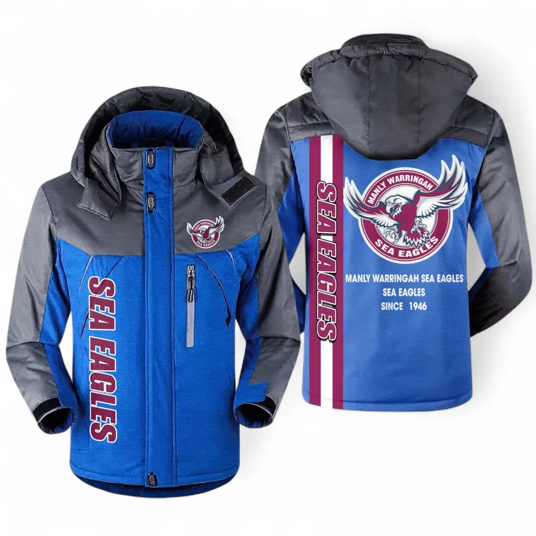 Custom Outdoor Charging Jacket For Manly Warringah Sea Eagles Fans – All-Weather Protection, Game-Day Energy