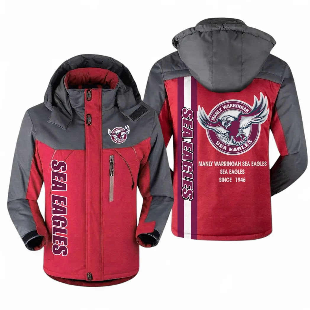 Custom Outdoor Charging Jacket For Manly Warringah Sea Eagles Fans – All-Weather Protection, Game-Day Energy