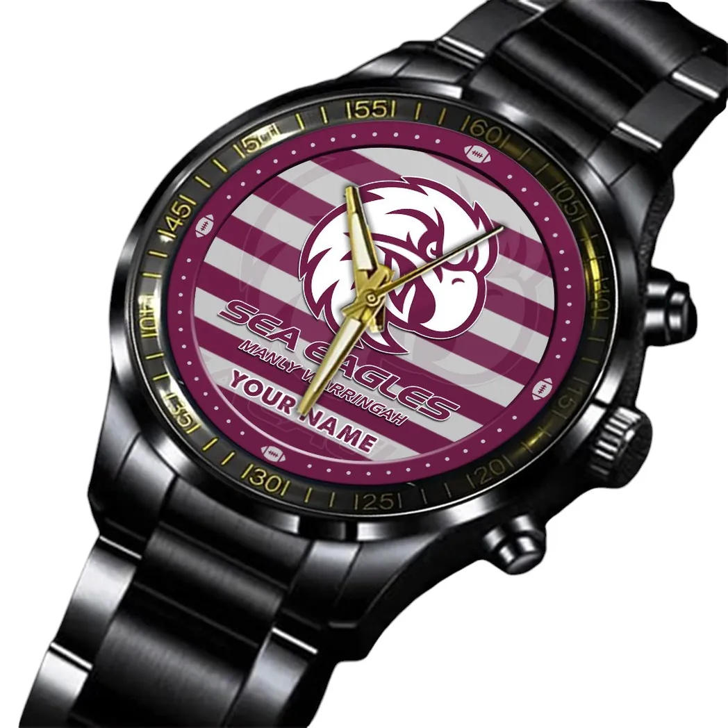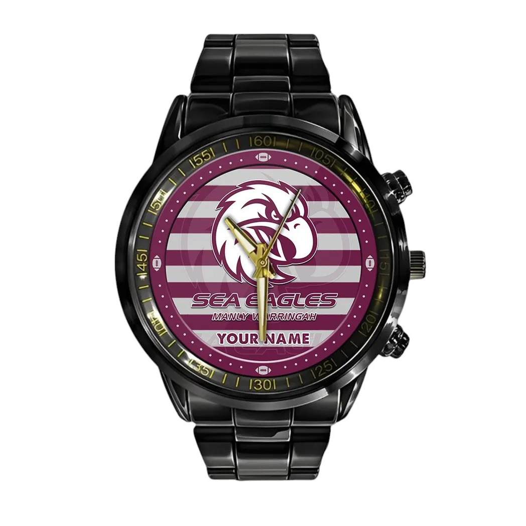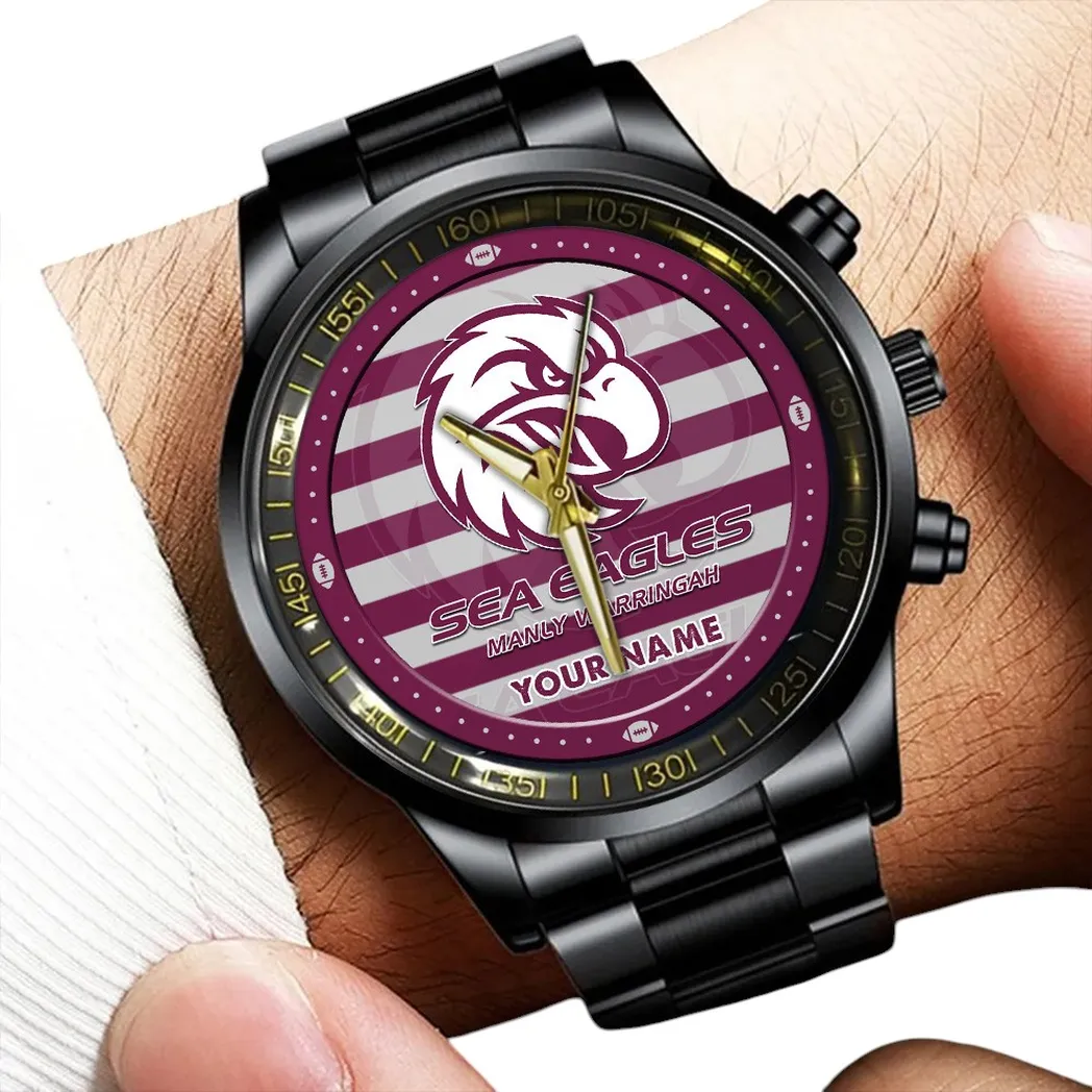 Manly Warringah Sea Eagles Stainless Steel Watch, All Over Print Stainless Steel Watch Manly Warringah Sea Eagles DNRL1176302036