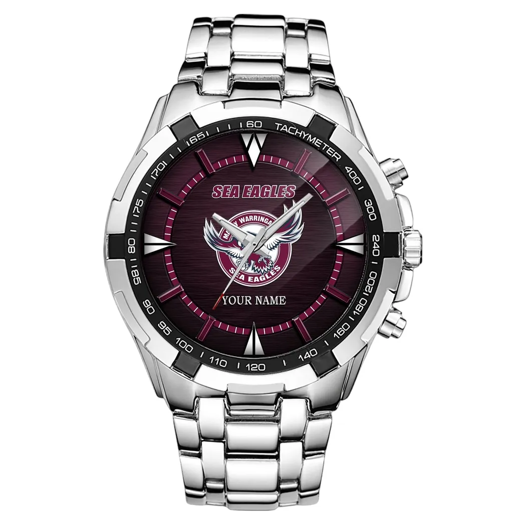 Manly Warringah Sea Eagles Steel Watches, All Over Print Steel Watches Manly Warringah Sea Eagles DNRL136712038
