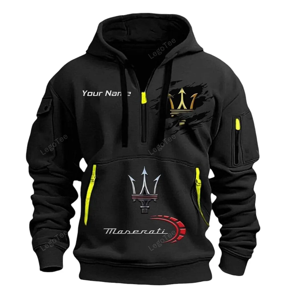 Maserati Half Zip Hoodie CAR113021425819, Best Gift for Him, Husband, Boyfriend – Black