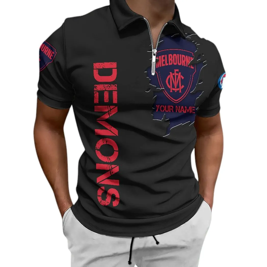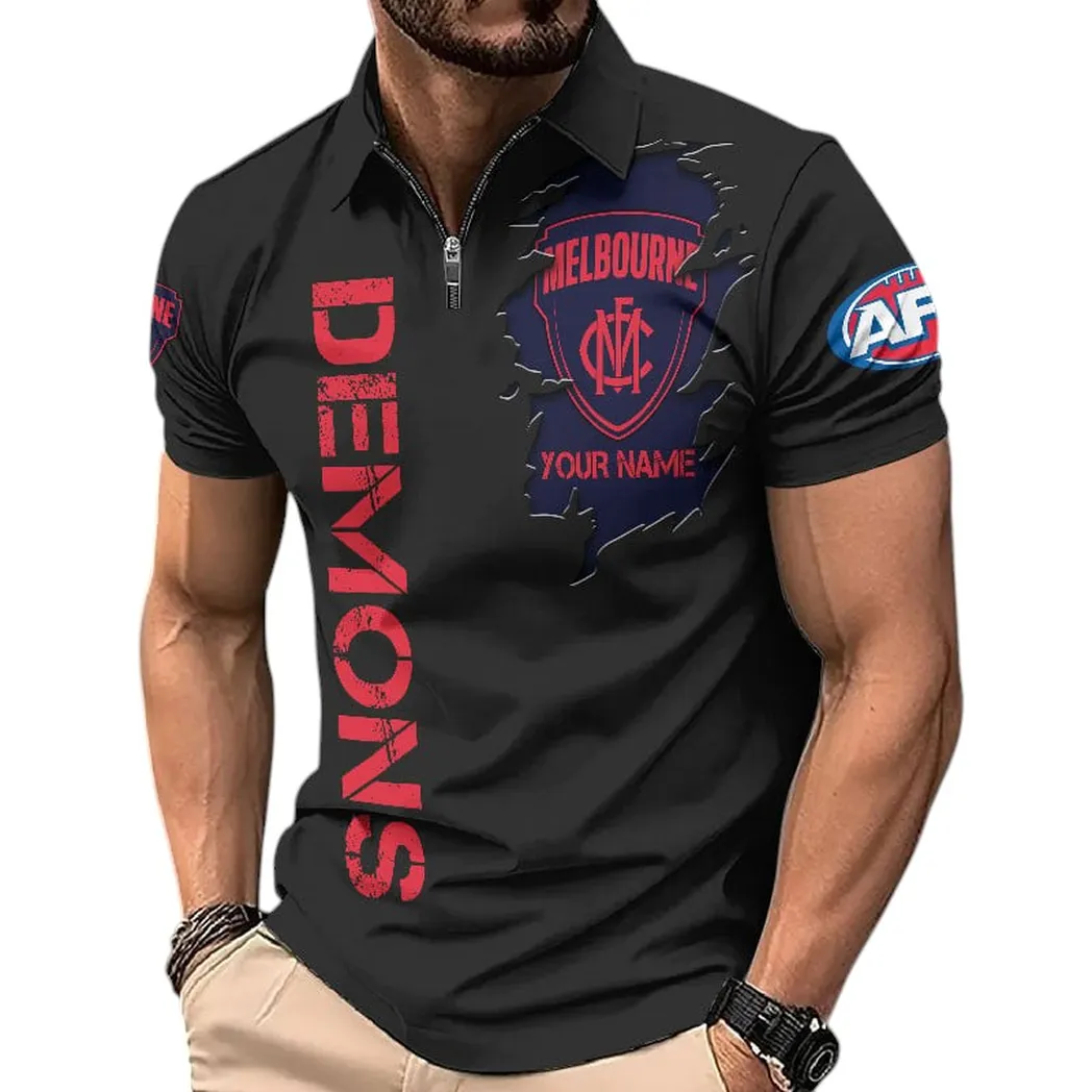 Melbourne Demons AFL Zipper Polo Shirt AFL08120624414, Gift For Fan Melbourne Demons
