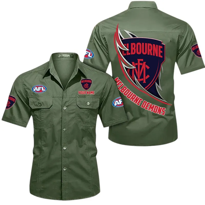 Melbourne Demons Fans Gift Short Sleeved Shirt, All Over Print Shỉt For Sport Fan, Custom Name AFL155071425135 – Army Green