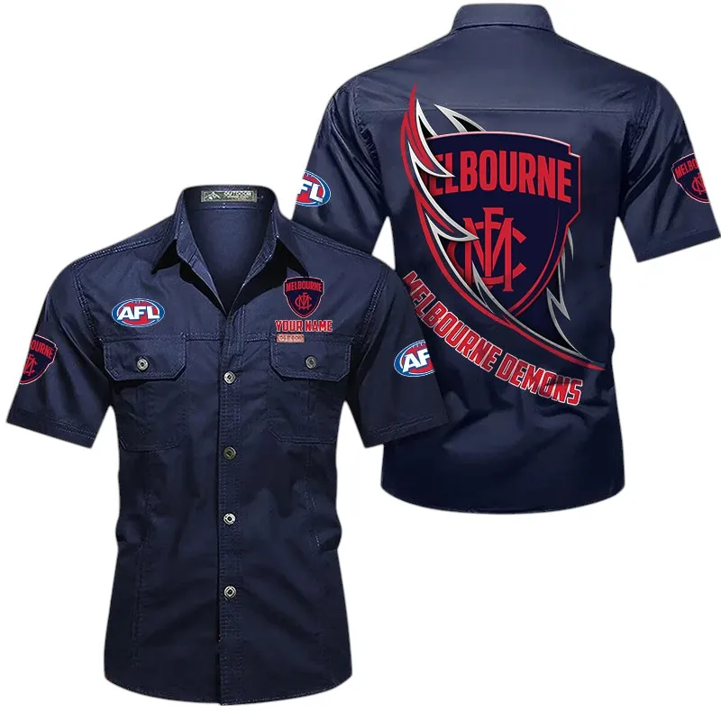 Melbourne Demons Fans Gift Short Sleeved Shirt, All Over Print Shỉt For Sport Fan, Custom Name AFL155071425135 – Dark Blue