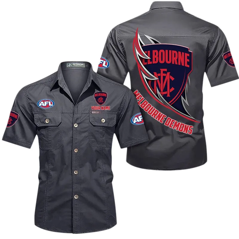 Melbourne Demons Fans Gift Short Sleeved Shirt, All Over Print Shỉt For Sport Fan, Custom Name AFL155071425135 – Gray