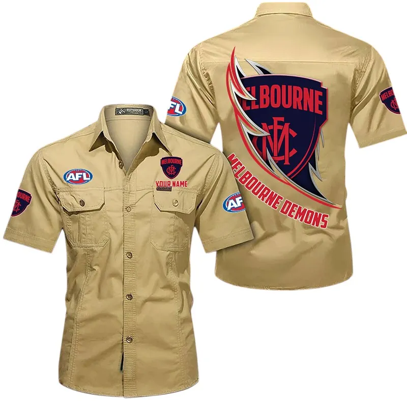 Melbourne Demons Fans Gift Short Sleeved Shirt, All Over Print Shỉt For Sport Fan, Custom Name AFL155071425135 – Khaki