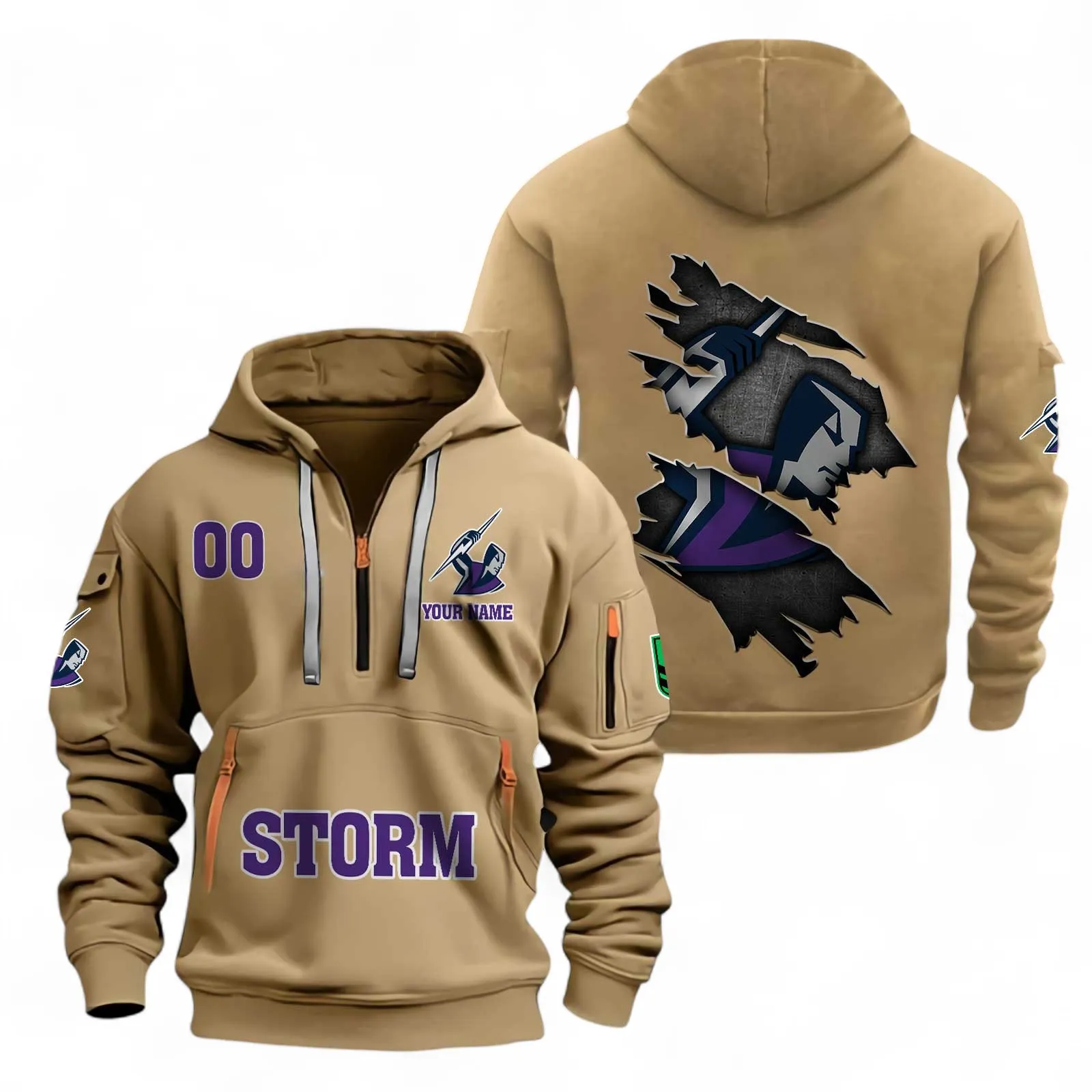 Melbourne Storm Fans Gift Hoodie Half Zipper, All Over Print Hoodie Half Zipper For Sport Fan, Custom Name NRL170071525340-Khaki