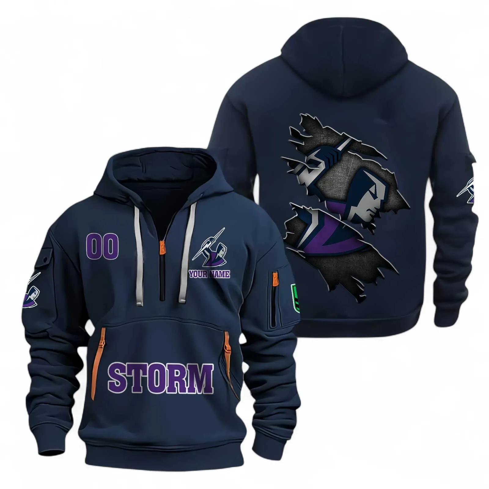 Melbourne Storm Fans Gift Hoodie Half Zipper, All Over Print Hoodie Half Zipper For Sport Fan, Custom Name NRL170071525340-Navy