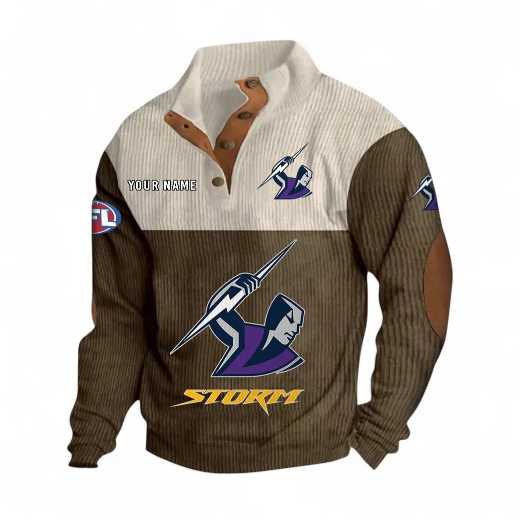 Designed with a stand-up collar instead of a traditional hood, this fan-favorite offers a fresh take on the hoodie look while still delivering the comfort and streetwear energy Melbourne Storm supporters love. Stay warm and sharp without sacrificing your loyalty.