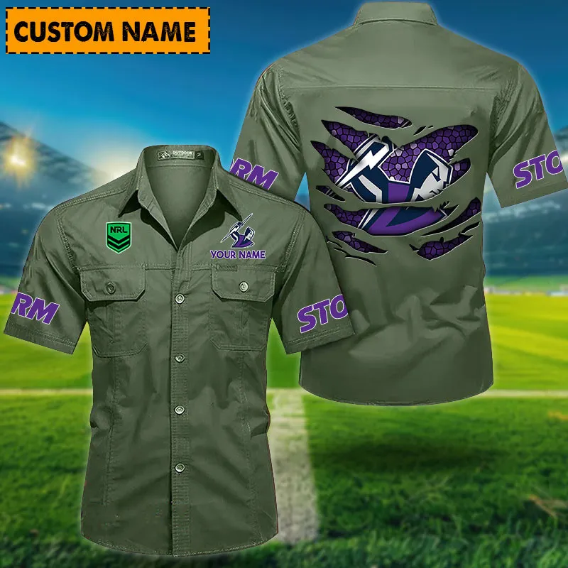 Melbourne Storm Fans Gift Short Sleeved Shirt, All Over Print Short Sleeved Shirt For Sport Fan, Custom Name NRL171071625569-Army Green