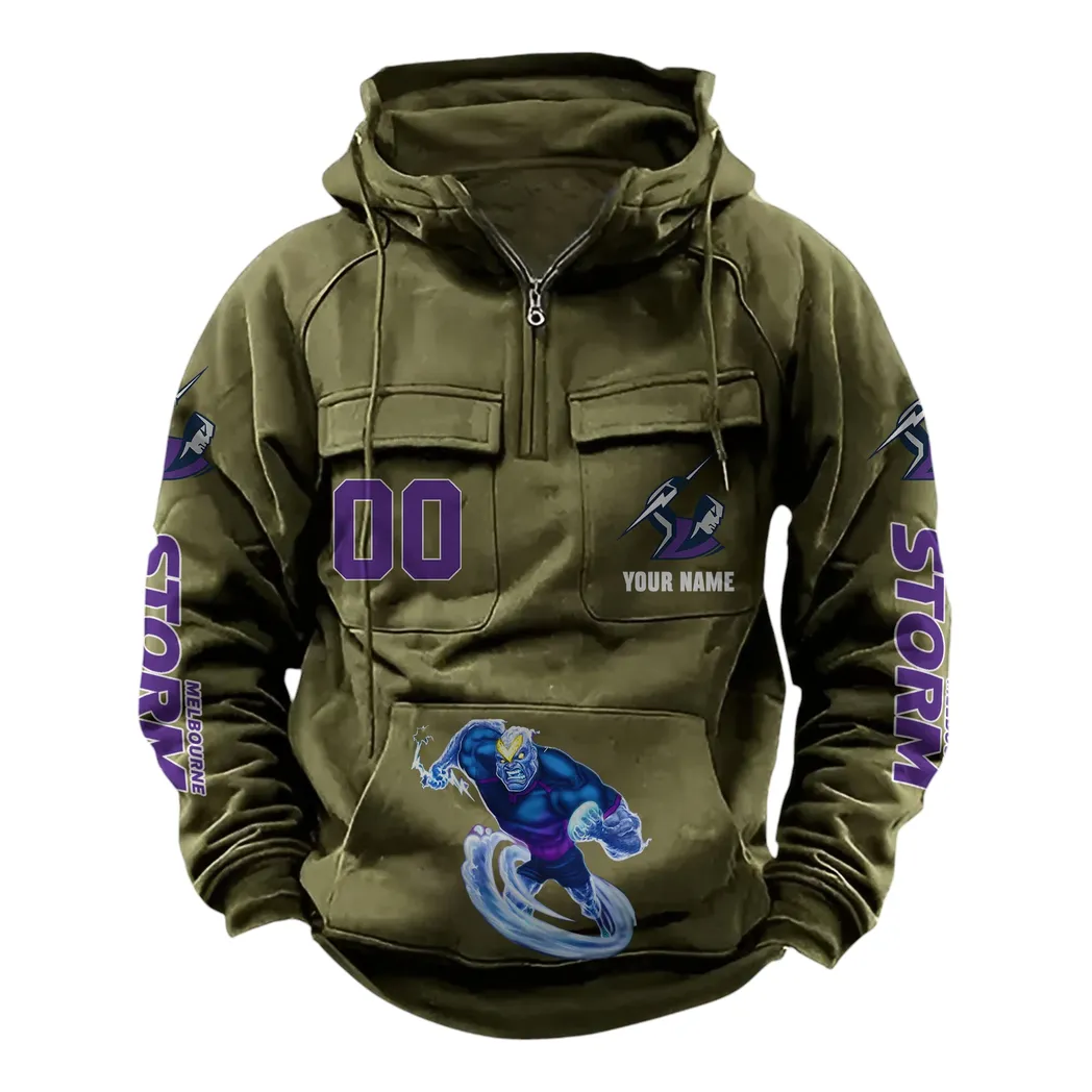 Melbourne Storm NRL Tactical Quarter Zip Hoodie NRL43012125598, Gift For Fan Melbourne Storm – Army Green