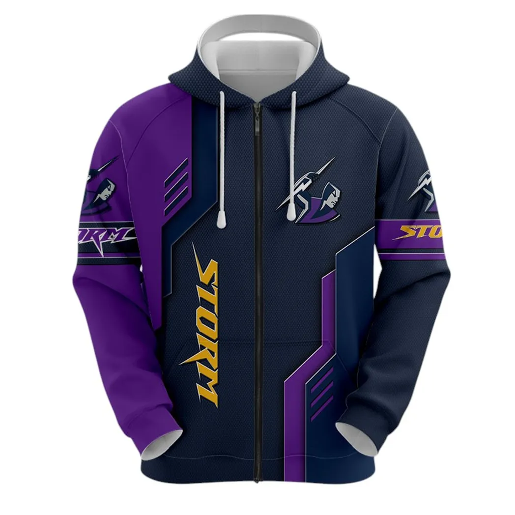 Melbourne Storm Zipper Hoodie, All Over Print Zipper Hoodie Melbourne Storm DNRL1256282032