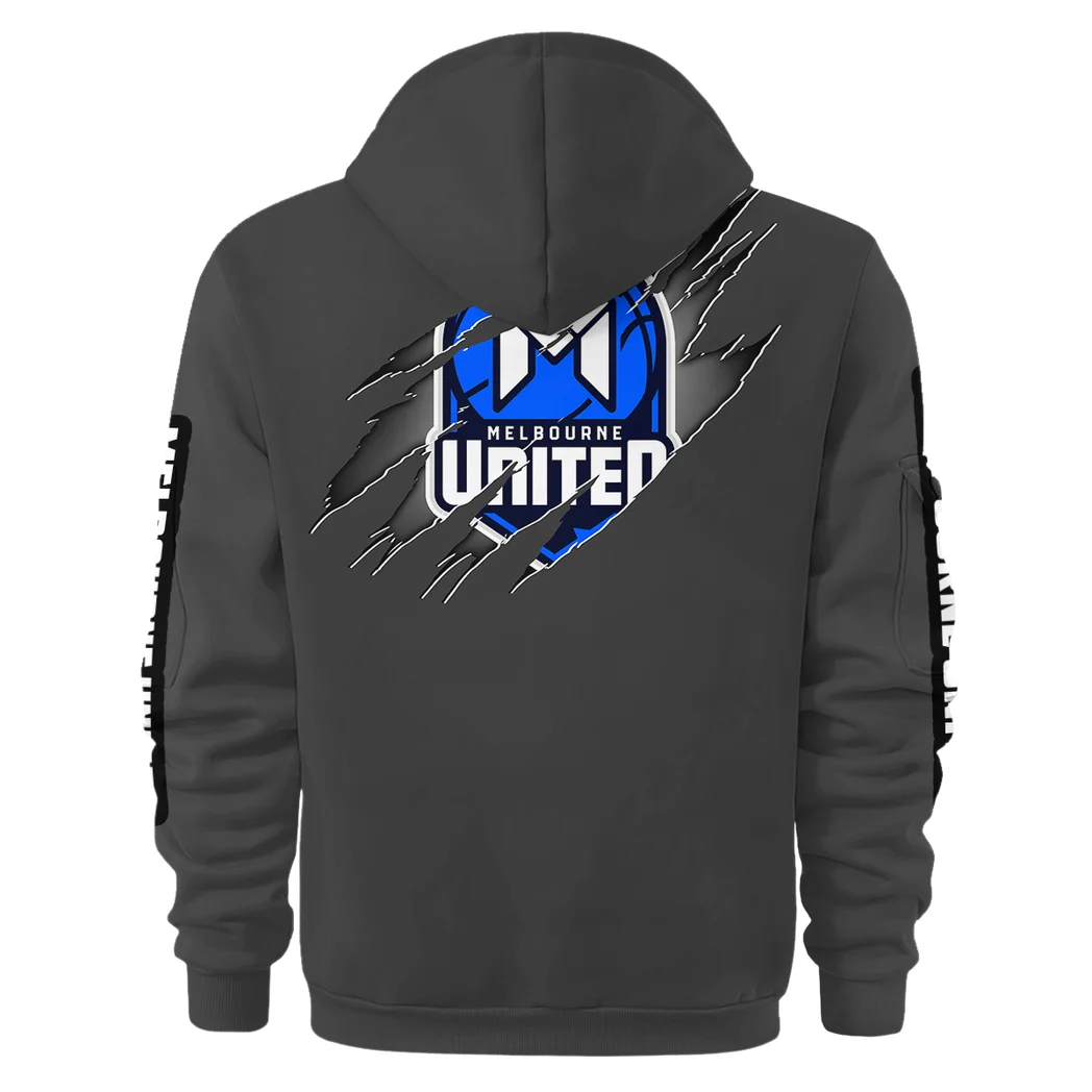 Melbourne United Zipper Hoodie  NBL 2025 For Fan Melbourne United HVN1162072525MU  HVN1162072525MUZHD - Gray