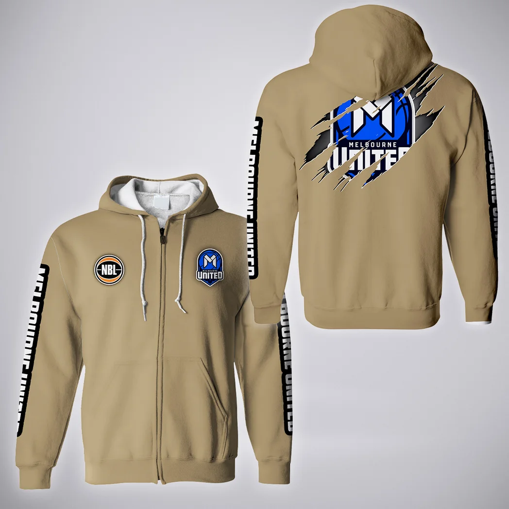 Melbourne United Zipper Hoodie  NBL 2025 For Fan Melbourne United HVN1162072525MU HVN1162072525MUZHD - Khaki