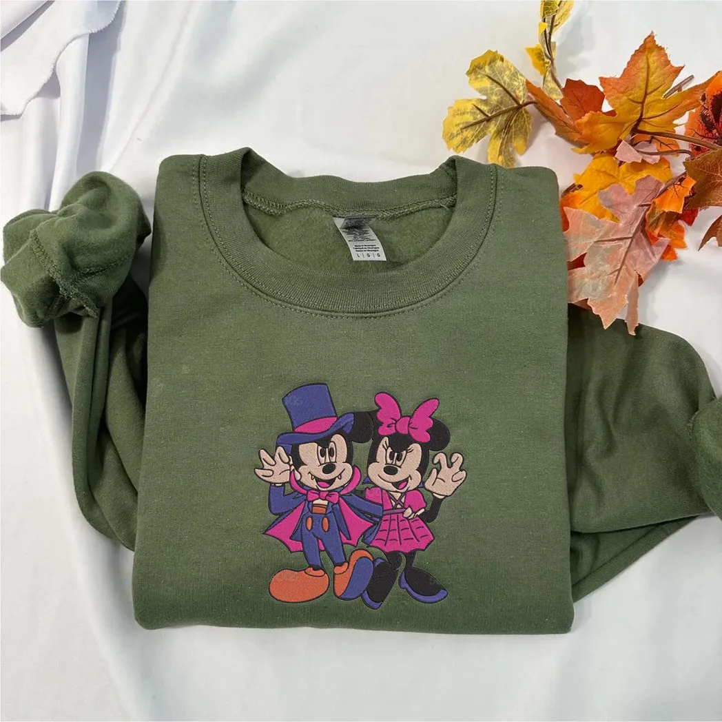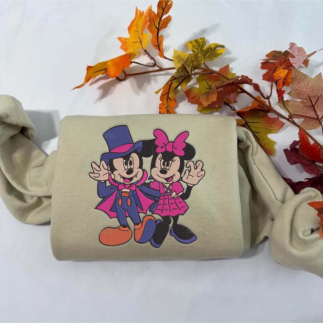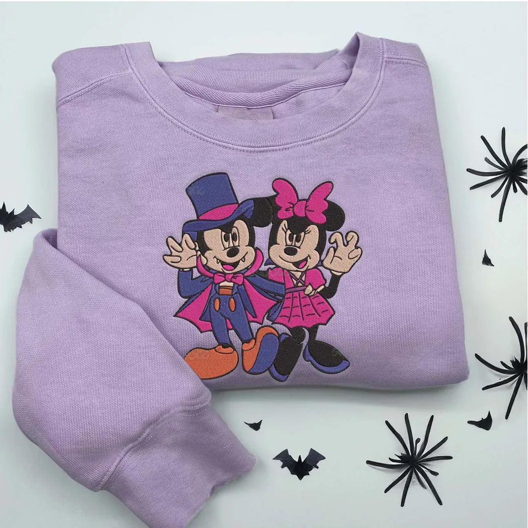 Mickey Minnie Mouse Cartoon Halloween Embroidered Sweatshirt Fashion Style