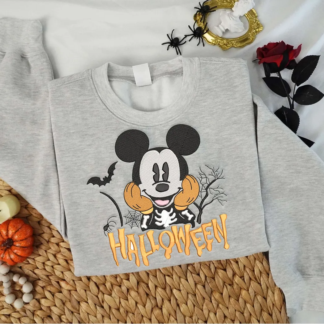 Mickey Mouse Cartoon Halloween Embroidered Sweatshirt Fashion Style