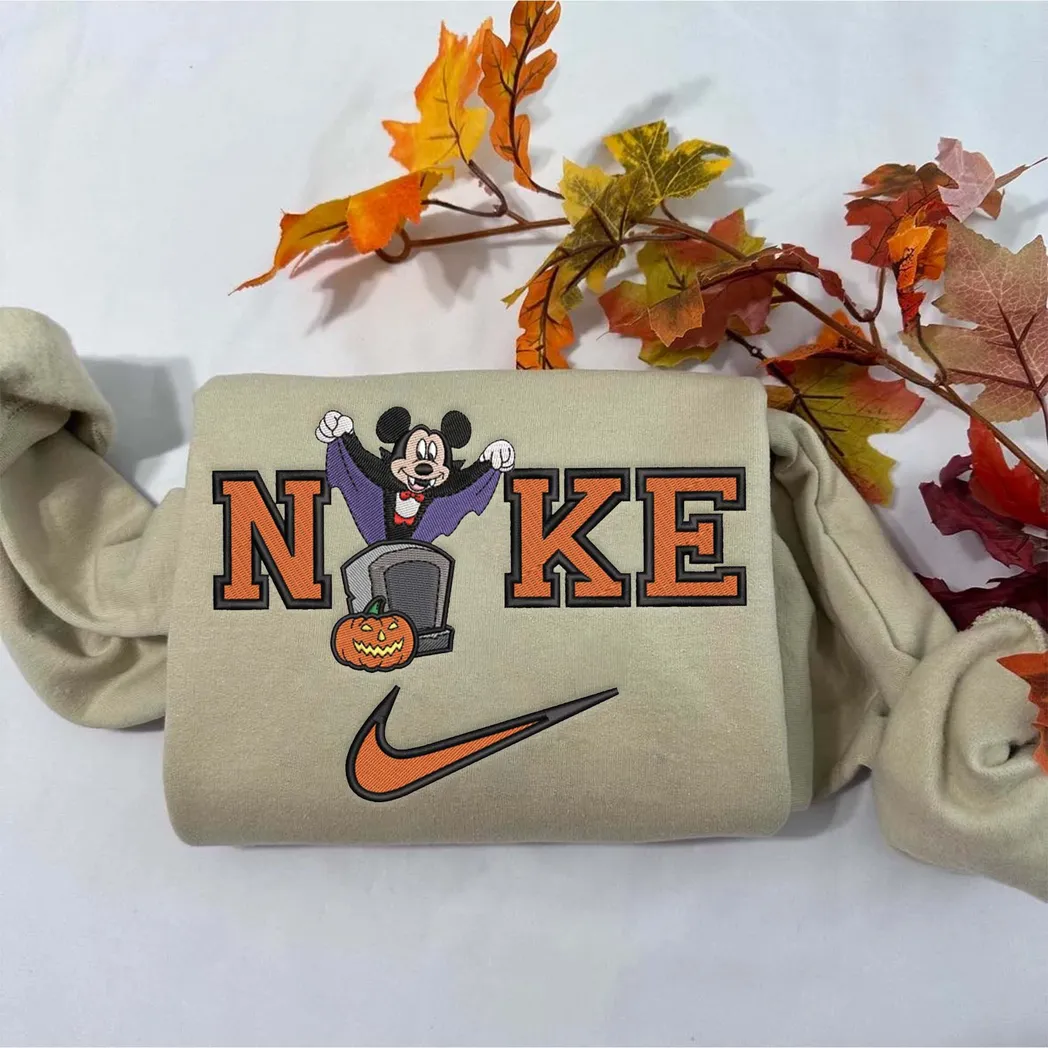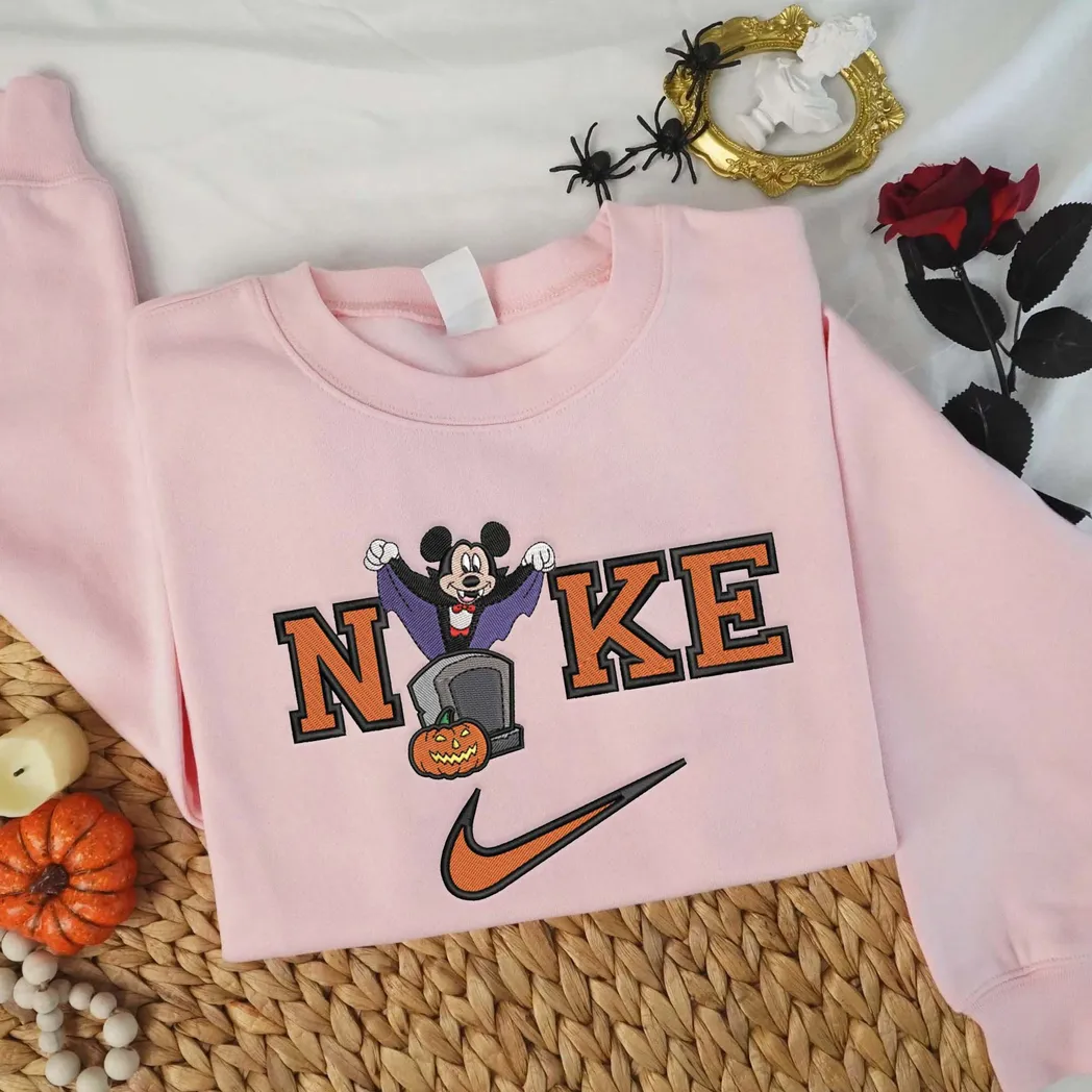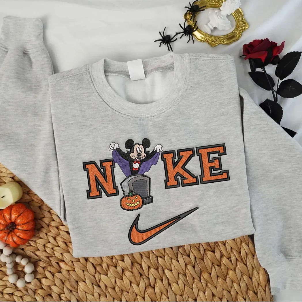 Mickey Mouse Cartoon Halloween Nike Embroidered Sweatshirt Fashion Style