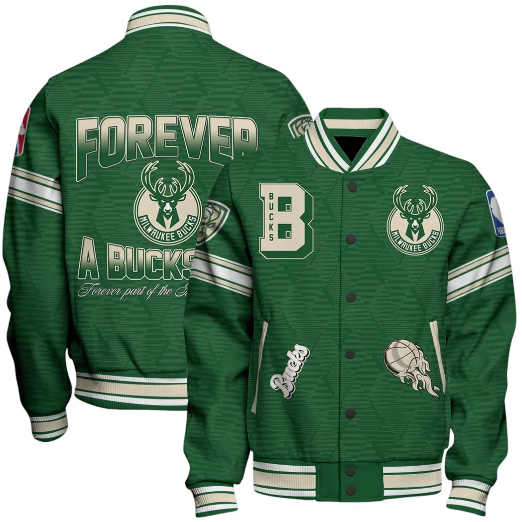 Milwaukee Bucks Baseball Jacket NBA74170125223- Gift For Fan Milwaukee Bucks -Baseball Jacket
