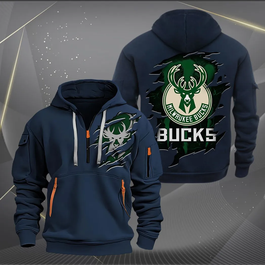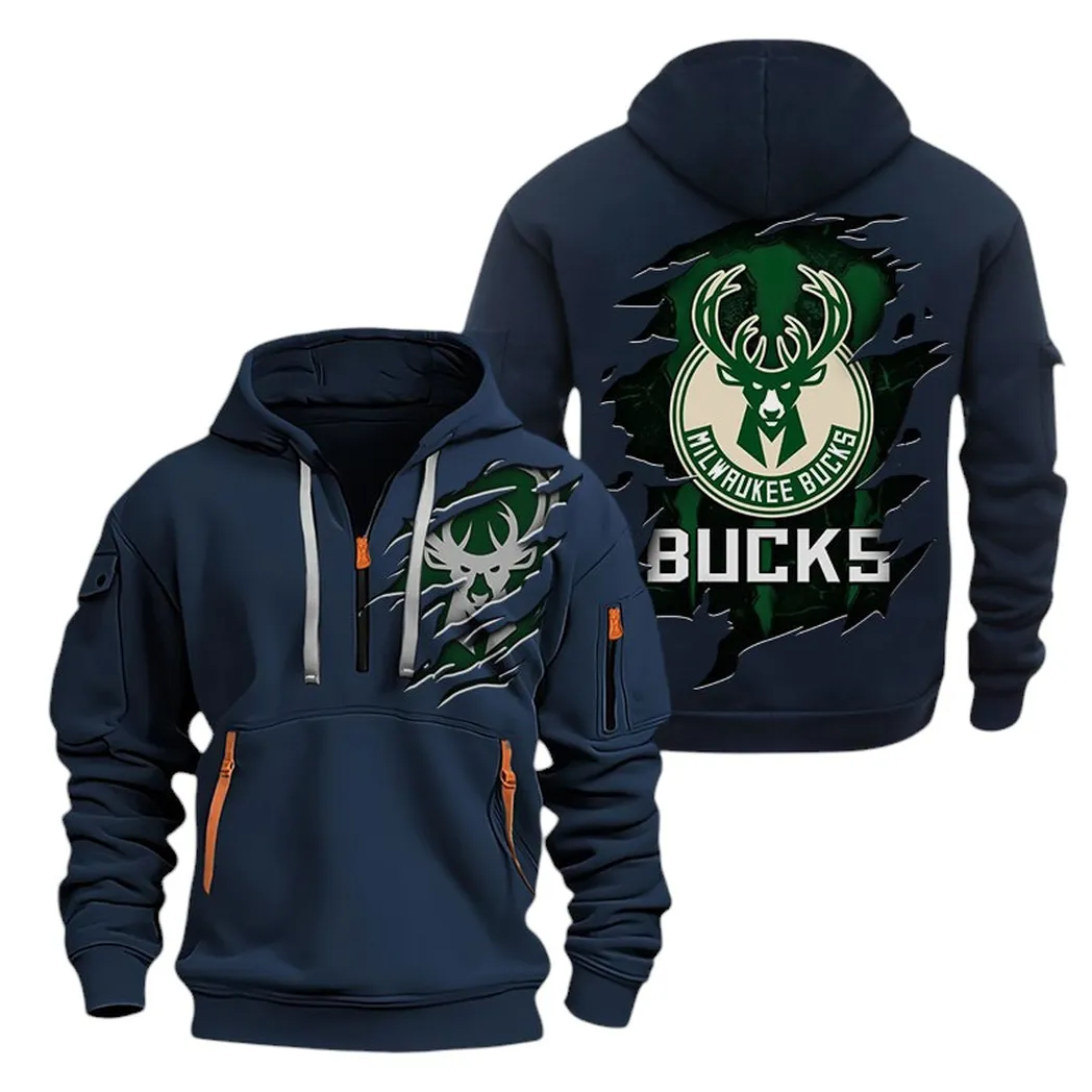 Milwaukee Bucks Hoodie Half Zipper NBA56180125018 – Gift For Fan Milwaukee Bucks – Blue