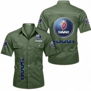 Motorcycles Fans Gift Short Sleeved Shirt, Button up Shirt All Over Print For Car Owners, Custom Name CAR392072125837-Army Green