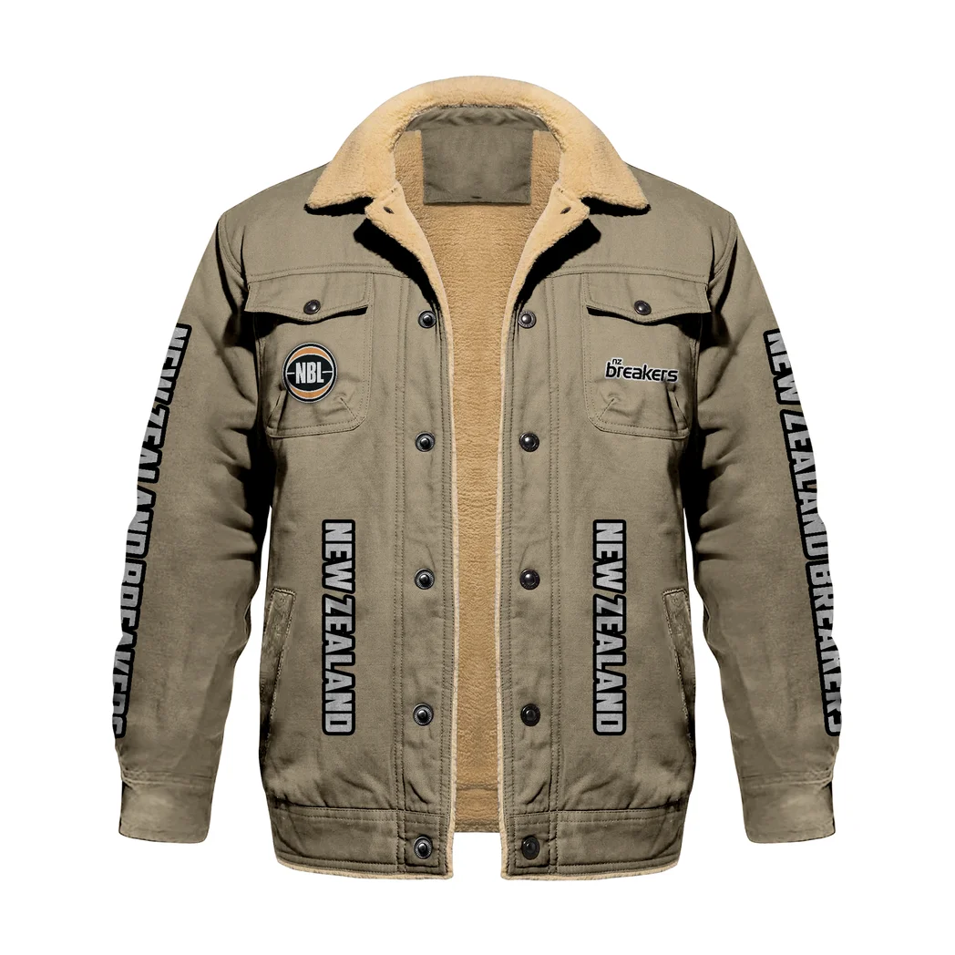 New Zealand Breakers Jacket Fur Collar Fleece NBL 2025 For Fan New Zealand Breakers HVN1162072525NB HVN1162072525NBCFJ – Khaki